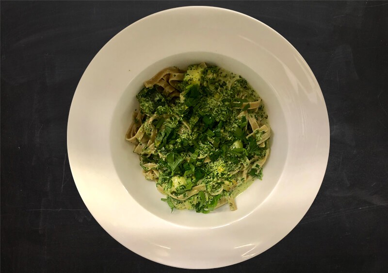 Tagliatelle, courgette, spinach, gorgonzola, garlic, dbl cream